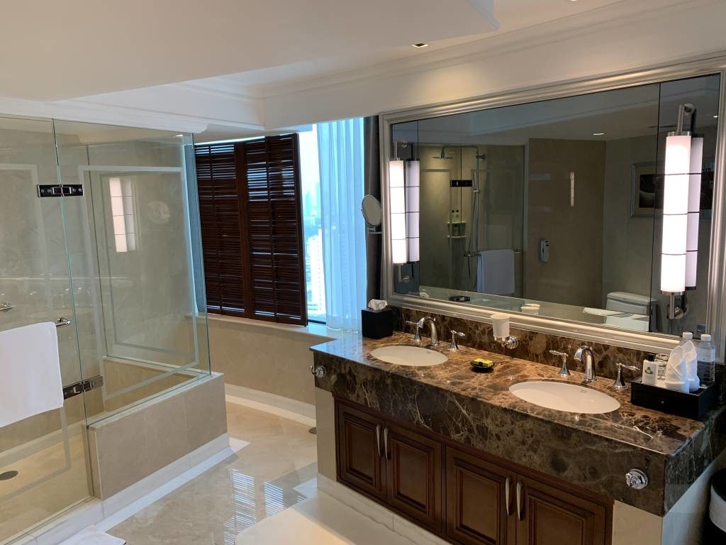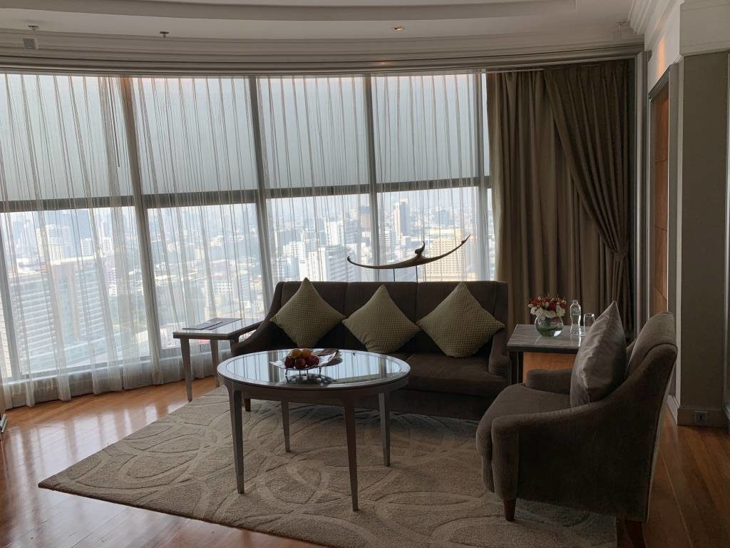 Gebucht hatten wir allerdings ein Club InterContinental Zimmer. Zu unserem Gefallen war schon weit vor der Anreise ein Upgrade in eine Corner Suite in der Buchung erkennbar. Etwas verwinkelt, aber dank der 31. Etage mit toller Aussicht ins Zentrum Bangkoks hinein. Die Corner Suiten befinden sich jeweils an den Enden der jeweiligen Etagen. Bei den Corner Suiten könnt Ihr zwischen der ruhigeren Seite oder wie bei uns mit Blick ins Stadtzentrum wählen.