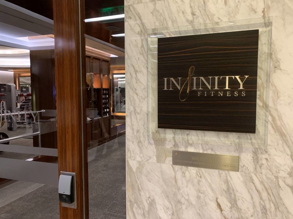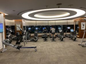 Der Spa- und Fitness-Bereich des Hotels befindet sich nur eine Etage tiefer. Normalerweise werden Gäste des Pools auch über die 36. Etage geleitet, um in Badeshorts nicht vor dem Club InterContinental aufzutauchen.