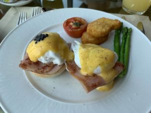 Aber kein Club InterContinental Frühstück wäre ein echtes Frühstück ohne Eggs Benedict, die wir am Tisch bestellen konnten. Doch Eierspeisen waren nicht das einzige, was die Speisekarte zum Frühstück bot. Denn Frühstücks-Steak, Waffeln oder Pancakes, Congee, Phad Thai und ein japanisches Bento Frühstück sorgten für ausreichend Abwechslung.