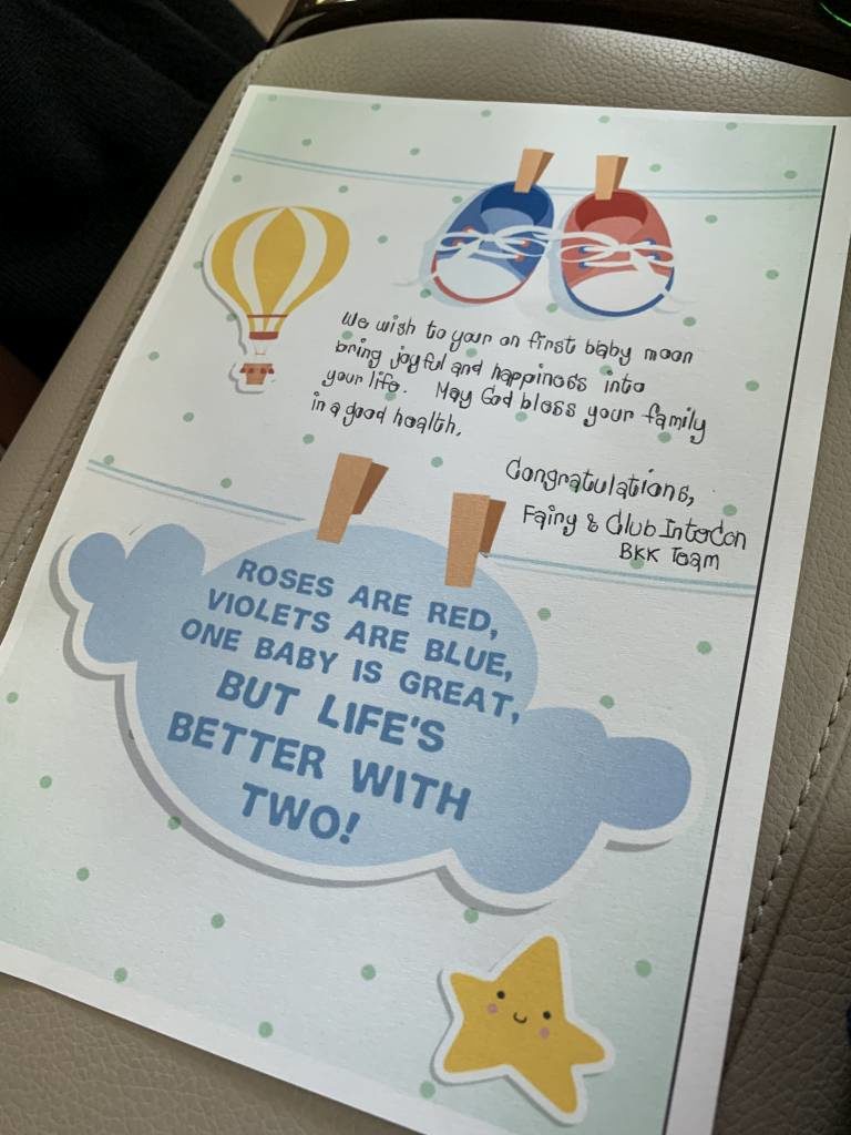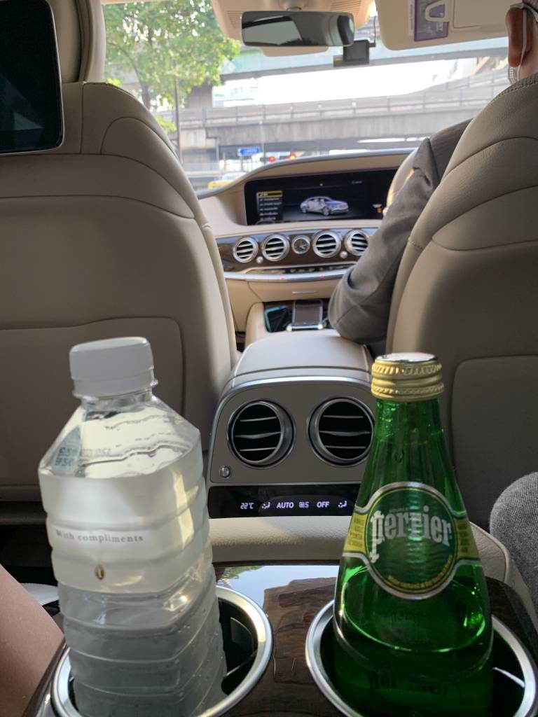 Fairy und das restliche Team hatten bei unserer Abreise noch mal eine tolle Überraschung für uns. Statt mit dem Taxi wurden wir mit der Mercedes S-Klasse des Hotels zum nächsten Abschnitt unserer Reise chauffiert. Und auf der Rückbank wartete noch eine kleine Überraschung auf uns: Ein Zwilligs-Pärchen Club InterContinental Bärchen mit einem lieben Gruß des Teams.