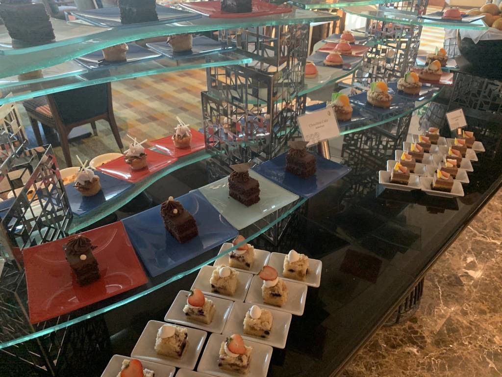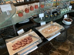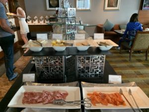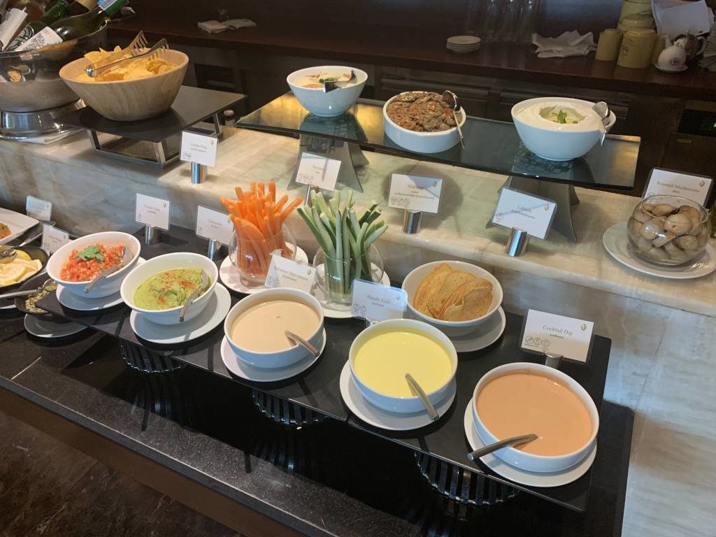 Das Konzept des Club InterContinental in Bangkok erinnerte mich sehr stark an das InterContinental Hua Hin. Von 14:30 bis 16:30 Uhr gibt es einen Afternoon-Tea, der als Set am Tisch serviert wird. Etwas später von 17:30 bis 19:30 Uhr gibt es alkoholische Getränke und ein Büffet, ergänzt von warmen Canapees, die ebenfalls am Tisch serviert werden. Selbst die Last-Order um 19:15 Uhr ist identisch.