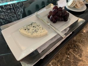 In der Club Lounge wurden wir direkt freundlich begrüßt und zu einem freien Tisch begleitet. Während wir unsere Dokumente und eine Kreditkarte überreichten, wurden wir nach unseren Getränke-Wünschen gefragt. Da es kein Ginger Ale in der Club Lounge gab, entschieden wir beiden uns für ein Glas Wasser.
