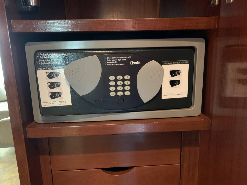 Am Ende des Wohnbereichs gelangt man in einen kleinen Flur. Hier sind diverse Schränke verbaut. Auch nützliches, wie Safe und Bügeleisen, finden sich hier. Aus dem kleinen Flur gelangt man entweder in das Schlafzimmer oder in das Bad.