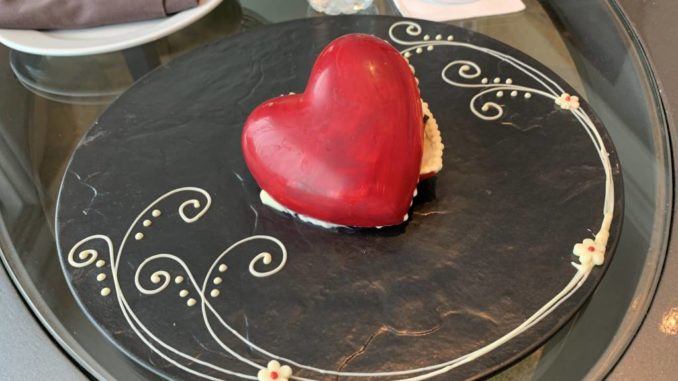 Beim Betreten der Corner Suite gelangten wir zunächst in den Wohnbereich. Direkt Richtung Eingangsbereich gerichtet, gibt es einen großer Schreibtisch. Darin liegen auch alle wichtigen Hotel-Informationen. Im zentralen Teil des Wohnbereichs befindet sich eine gemütliche Sitzgruppe mit einem Couchtisch und gegenüber ein erster Flachbildfernseher. Auf dem Tisch wartete zur Begrüßung ein kleines Willkommensgeschenk auf uns. Unter anderem ein Herz aus Schokolade. Für den gemütlichen Fernsehabend mit einem Bierchen und ein paar Nüssen, gibt es hier im Raum ebenfalls die (deutlich überteuerte) Minibar.