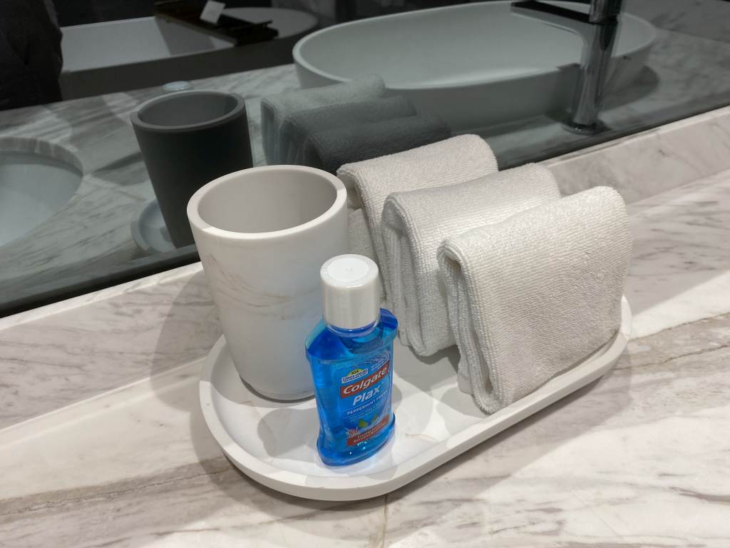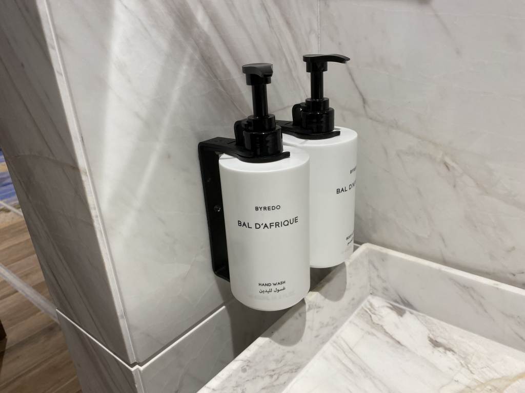 Die Pflegeprodukte stammten aus der Linie Bal d’Afrique von Byredo. Seife, Duschbad, Shampoo und Conditioner kommen dabei aus Spendern. Was mich etwas verwundert hat, ist dass die Seife in den öffentlichen Badezimmern einen anderen Geruch und eine andere Farbe hatte, als auf meinem Zimmer. Darüber hinaus gab es im Bad noch alles was man so braucht. Von der Zahnbürste bis hin zum Bademantel und den Slippern war alles vorhanden.