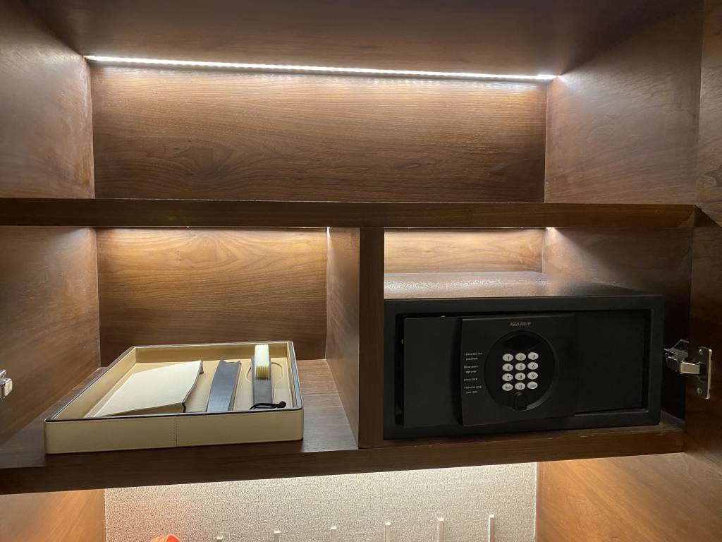 Abschließend verfügt die Suite noch über ein riesiges Badezimmer. Im Vorraum des Badezimmers findet Ihr in Garderoben-Schränken ausreichend Platz, um Euer Hab und Gut zu verstauen. Wertsachen können hier auch im Safe verschlossen werden und für die zerknitterte Kleidung stehen Bügelbrett und Bügeleisen bereit.