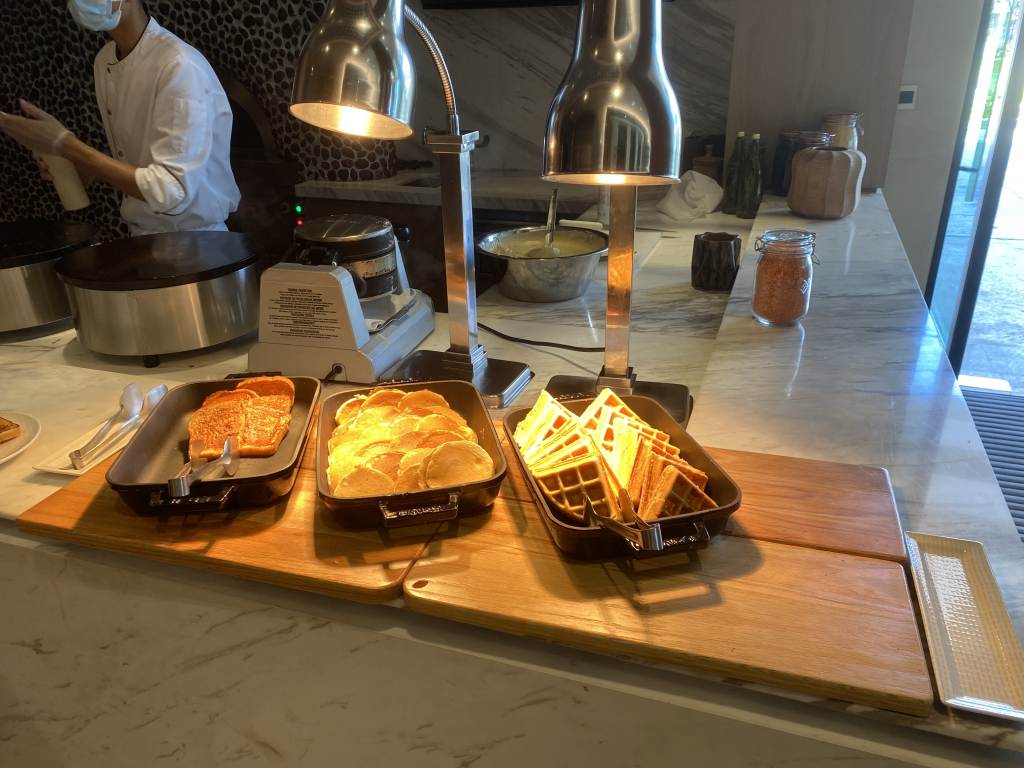 All das könnt Ihr zusammen mit einer umfangreichen Auswahl an Brötchen, Brot und Pastries genießen. Oder Ihr geht ein Stück weiter und bedient Euch am frischen Obst oder den Pancakes und Waffeln.