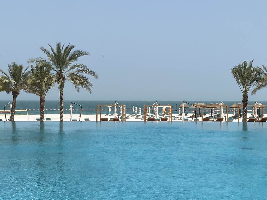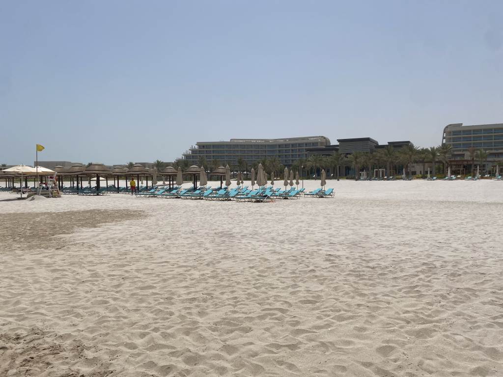 Der Strand ist ein typischer künstlicher Sandstrand, wie man ihn in den Vereinigten Arabischen Emiraten erwartet. Mit zahlreichen Liegen und während des gesamten Tages von einem Rettungsschwimmer überwacht.