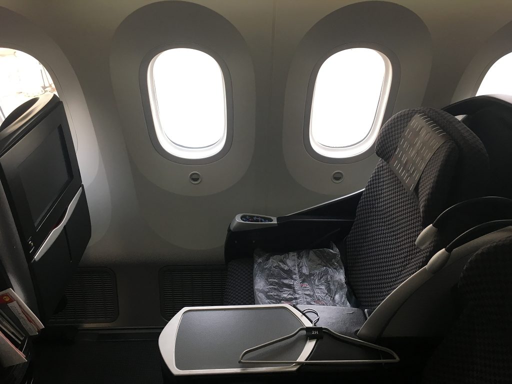 Japan Airlines (JAL) verfügt über eine umfangreiche Dreamliner-Flotte und fliegt damit Destinationen in Asien und der ganzen Welt an. Für internationale Flüge hatte JAL bis zu sechs (!) verschiedene Business Class Sitze im Einsatz. Auf dem Flug von Peking nach Tokio Haneda wurde der JAL Shell Flat Neo eingesetzt – immerhin ein Sitz, mit dem JAL auch über den Pazifik fliegt.