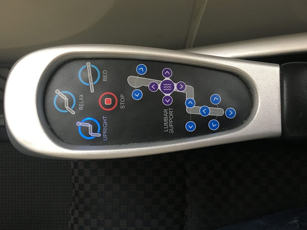 Die Bedienelemente befinden sich jeweils an der Armlehne, die nicht zum Mitteltisch gehört, denn diesen teilt man sich mit dem Sitznachbar (bzw. der Sitznachbarin).