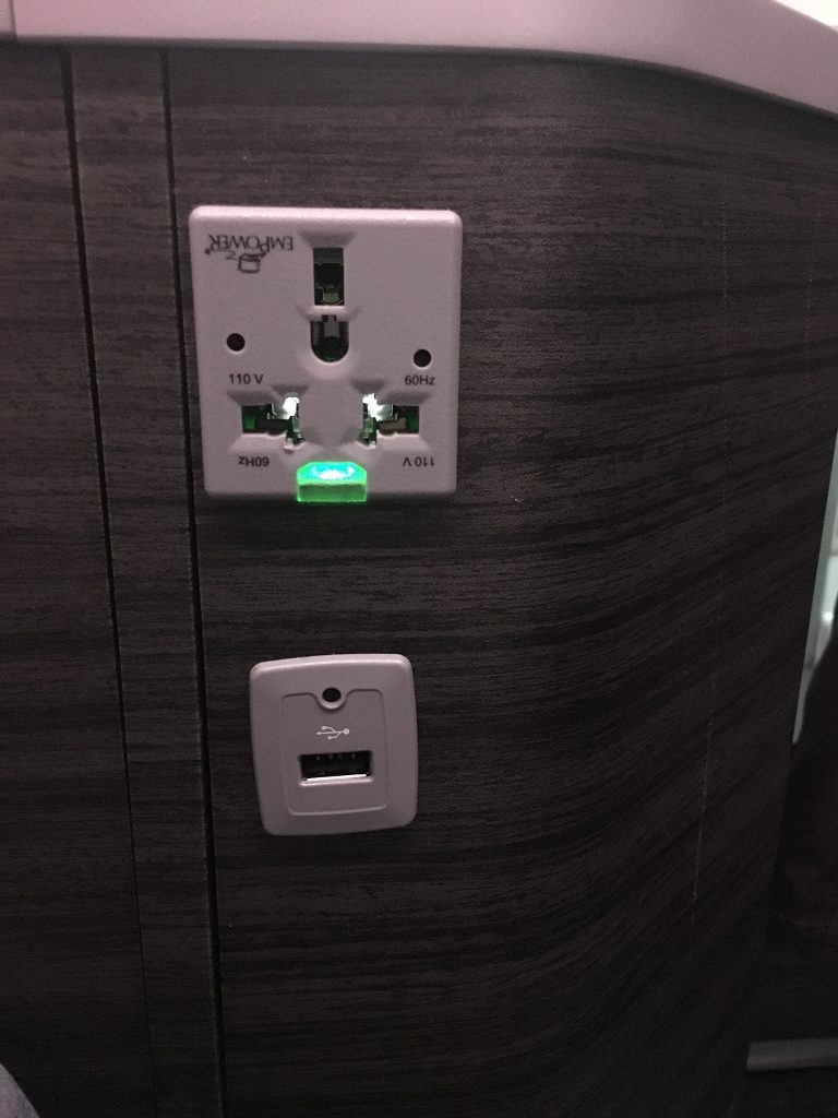 Ich litt an „ReiheEinseritis“ und habe mich für einen Sitzplatz ganz vorne entschieden. Was auf der Bordkarte vielleicht toll aussieht, hatte auf dem Flug leider einen kleinen Nachteil. Die erste Sitzreihe ist so weit vorne, dass die Röhre des Flugzeugs dort schon etwas kleiner wird. Das reduziert den in der „Suite“ zur Verfügung stehenden Platz.