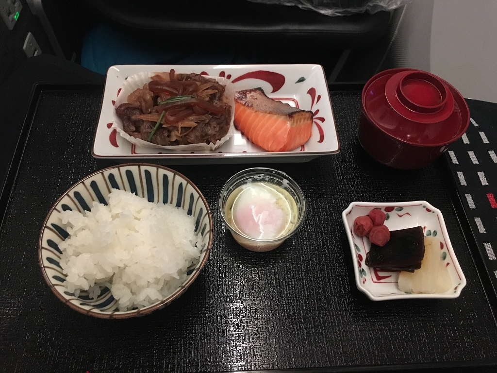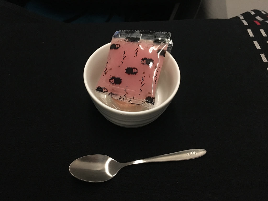 Die Purserin kam vorbei, baute sich in dem kleinen Gang zum Gang auf und ließ mich mit ernstem Blick wissen, dass sie die Purserin sei und für den Service bei mir nur die Crew zuständig sei. Die für mich zuständige Cabin Attendant schien mich sehr mit „spitzen Fingern“ zu behandeln. Die Interaktion war auf ein Minimum beschränkt. Ein Beispiel: Ich bestellte Shochu und fragte, welcher von der Karte wie schmecken würde. Darauf zeigte die Cabin Attendant auf einen, sagte „This“ und verschwand. 30 Sekunden später war sie mit einem randvoll gefüllten Wasserglas mit Shuchu drin wieder da. Nur, was sollte ich mit einem vollen Glas Shochu? Immerhin hat das gute Getränk ca. 20% Alkohol gehabt.