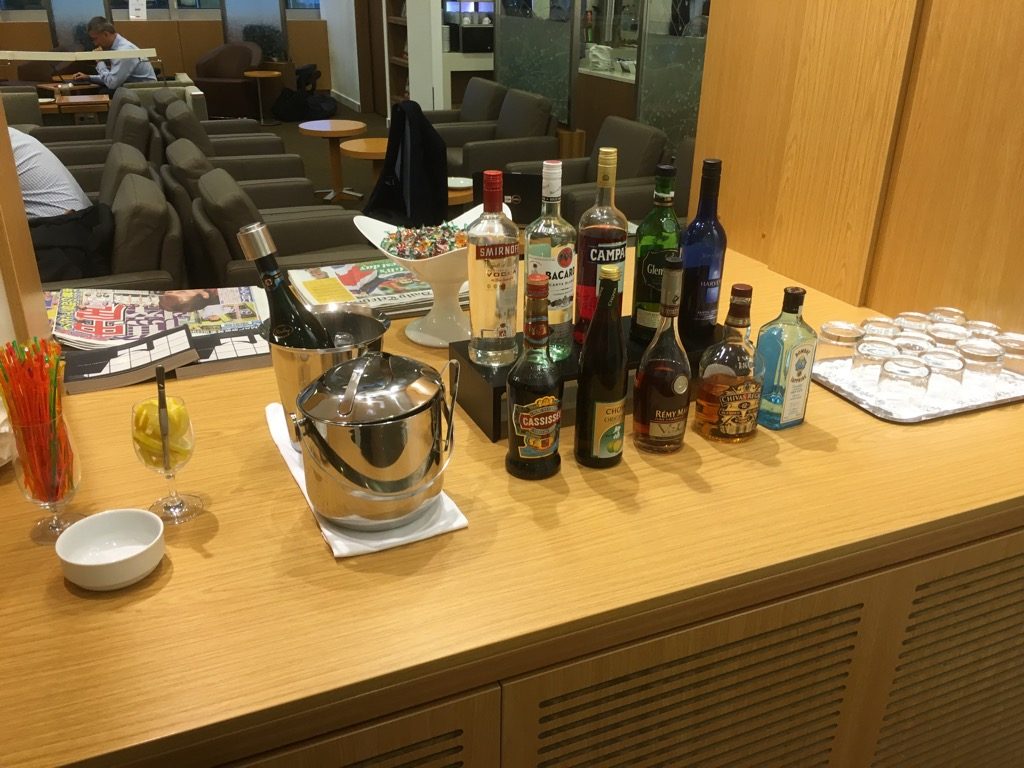 Viel habe ich da leider nicht zu berichten. Der First Bereich ist deutlich kleiner als die Business Lounge. Nach meiner Erinnerung ist die Alkohol-Auswahl, mit Ausnahme des Pommery Champagners (Airberlin throwback :-)), soweit identisch. Es gibt nachmittags dann auch eine kleine Auswahl warmer asiatischer Gerichte am Büffet und ich habe auch schon Gäste gesehen, die Nudelsuppe, Ramen, o.ä. aus der Küche serviert bekommen haben. Da hab ich aber noch nicht selbst nachgefragt.