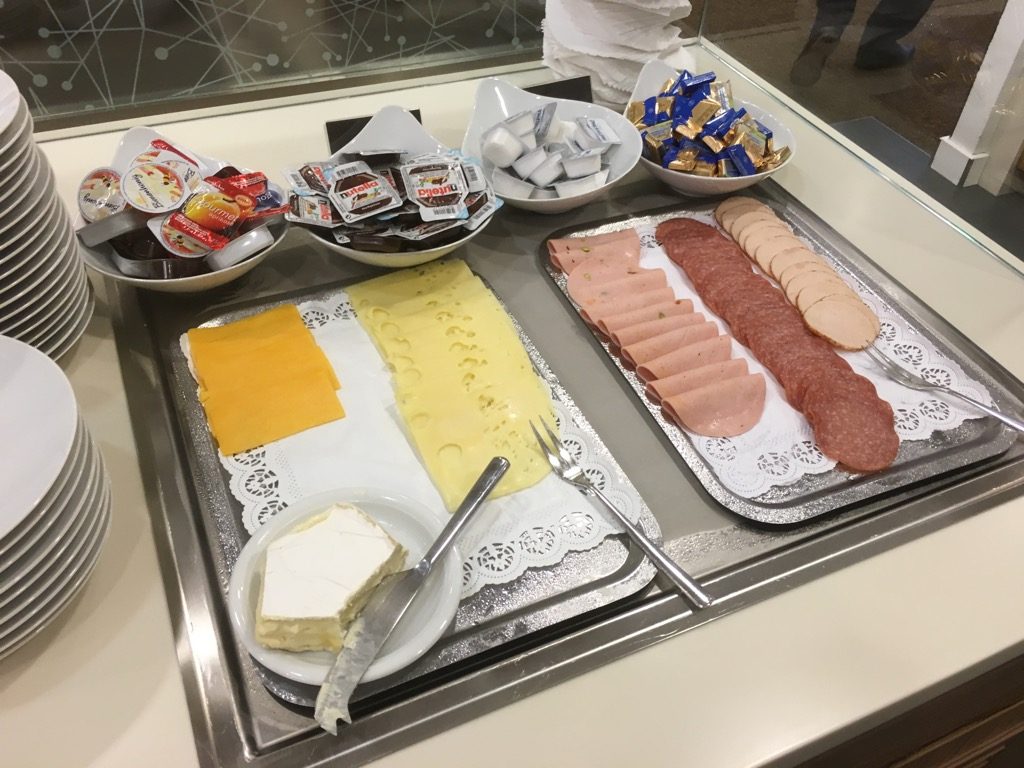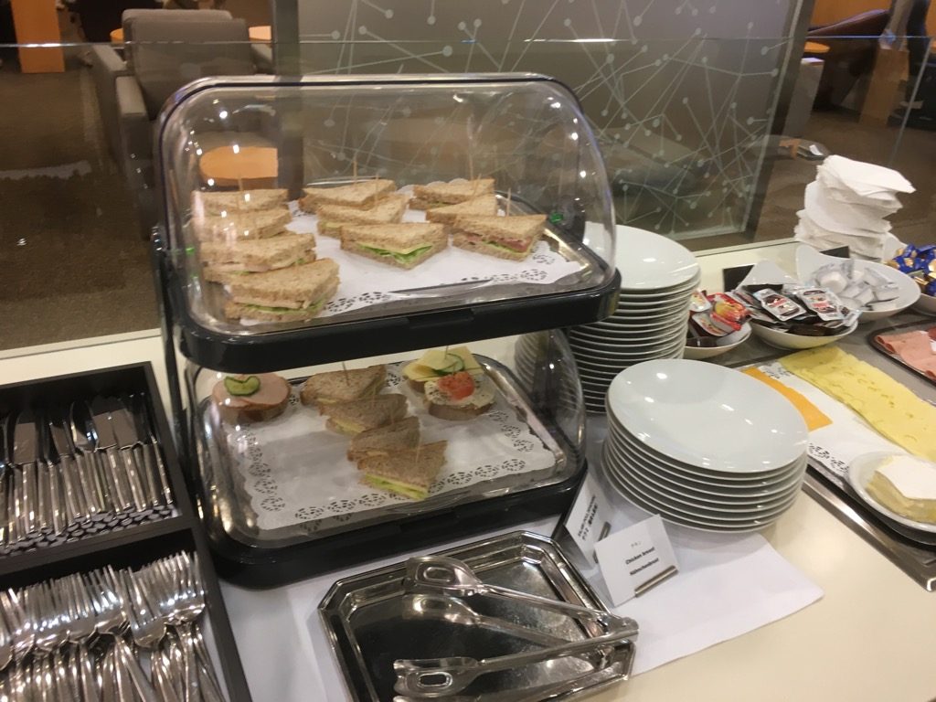 Im vorderen Bereich der Sakura Lounge befindet sich ein Buffet, an welchen sich die Gäste selbst bedienen können. Die Auswahl an Speisen ist hierbei recht ernüchternd und beschränkt sich am Morgen zum Frühstück auf Brot und Brötchen, Aufschnitt, Sandwiches und Müsli.