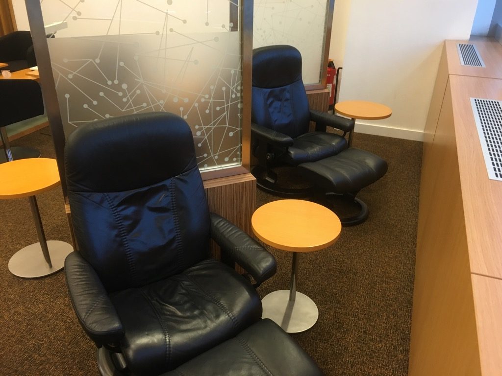 Der Besuch ist wohl schon eine Weile her? Die Lounge ist inzwischen (leider) anders möbliert und die schönen Ekornes Sessel sind nicht mehr vorhanden.