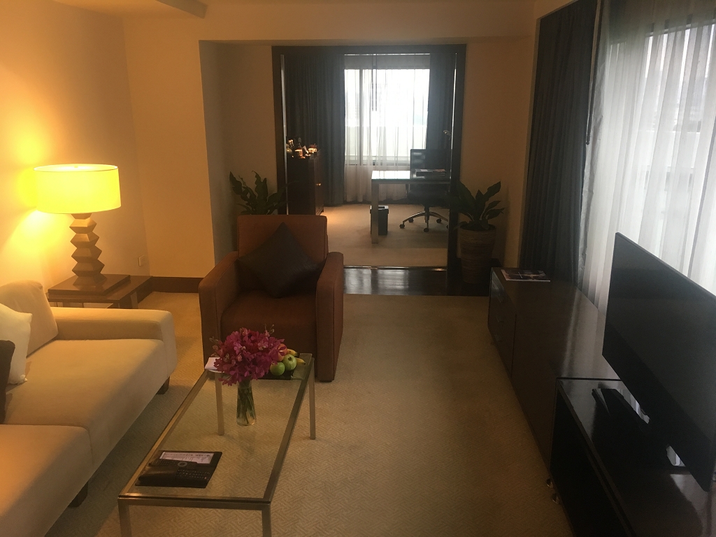 Durch die weißen Teppiche, die hellen Möbel und die größere Fläche wirkt die Suite sympathischer als die Zimmer. Wenn man den zusätzlichen Platz allerdings nicht braucht, lohnt sich das Upgrade aus meiner Sicht nicht.
