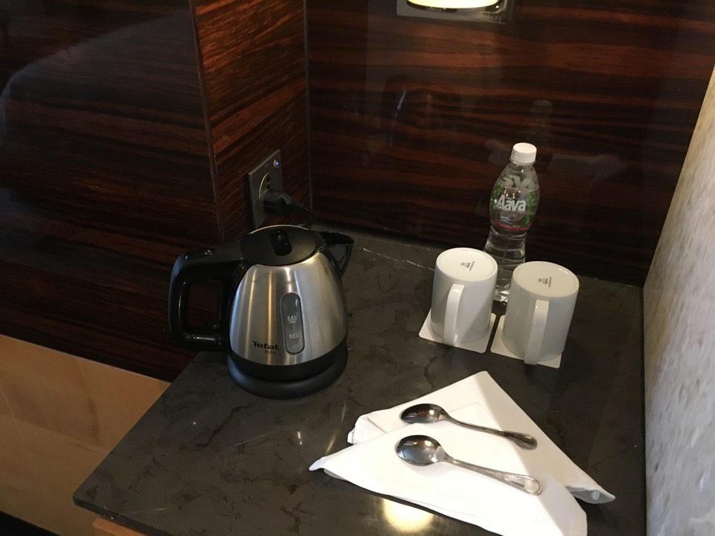 Eine Minibar und Wasserkocher für Tee und Kaffee gab es natürlich auch, sowie mehrere kostenlose Flaschen Wasser auf dem Zimmer.