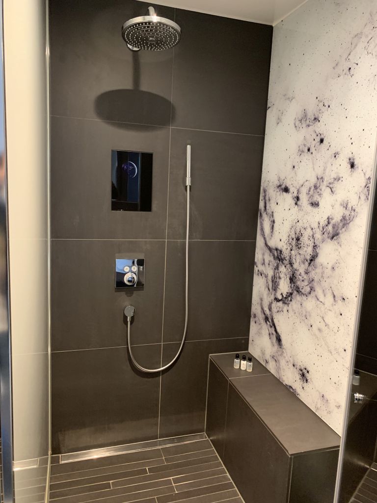 Alles wirkt wirklich sehr stylisch und dem Thema entsprechend. Selbst die Deckenbeleuchtung ist im Stile der Triebwerke eines Space-Shuttles gehalten. Die undurchsichtigen Fenster sind allerdings stark gewöhnungsbedürftig und daher wollte ich nicht mehrere Tage am Stück in dieser Suite übernachten.