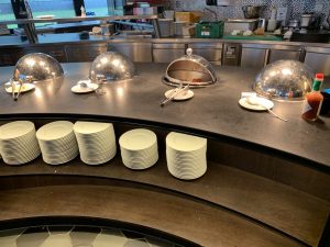 Die Auswahl ist umfangreich. So gibt es die typischen warmen Optionen wie Rührei, Würstchen und Rösti. Auf Wunsch hätte man uns auch frische Eierspeisen, wie Omelettes an der Live-Cooking-Station zubereitet.