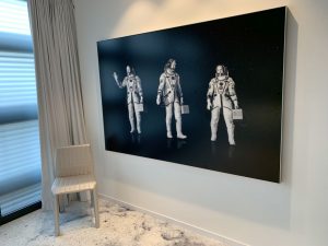 Als wir nach einer guten Stunde zurückkamen, war wieder der ursprüngliche Mitarbeiter an der Rezeption. Ich frage Ihn, ob unser Gepäck mittlerweile umgezogen sei und schaute in ein verdutztes Gesicht. Nach kurzer Erläuterung bekamen wir allerdings unsere Schlüssel-Karten für die Space-Suite Nr. 2046 im fünften Stockwerk des Hotels.