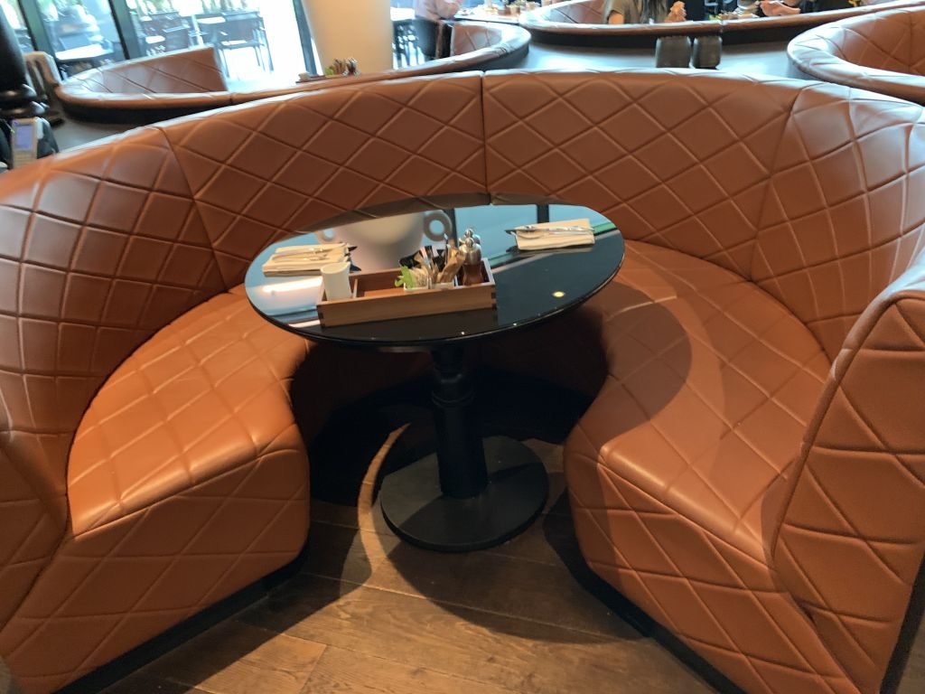 Auch hier beeindruckt wieder die Gestaltung des Restaurants und so konnten wir uns einen Tisch in einer runden Lounge-Ecke für unser Frühstück sichern.