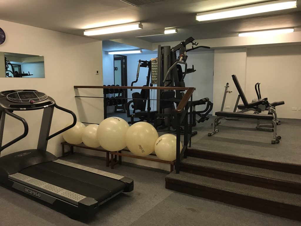 Das Gym war klein, aber funktional ausgestattet. Neben Geräten für Ausdauersport gab es auch freie Gewichte und Geräte fürs Krafttraining.