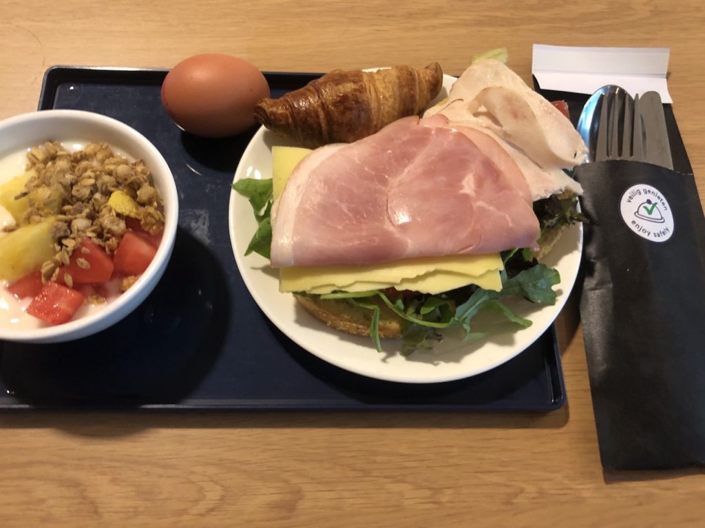 KLM hat während des Lockdowns schon sehr frühzeitig wieder eine Lounge an ihrem Hub in Amsterdam angeboten. Zunächst wurde die Crowne Lounge im non-Schengen Bereich wieder geöffnet, inzwischen ist auch das Pendant bei den Schengen-Gates geöffnet. Vor dem Abflug um 10 Uhr morgens hatte ich ausreichend Zeit um dort zu frühstücken. Trotz einiger Einschränkungen konnte man wieder etwas von den guten alten Zeiten der Fliegerei genießen.
