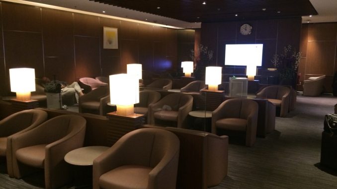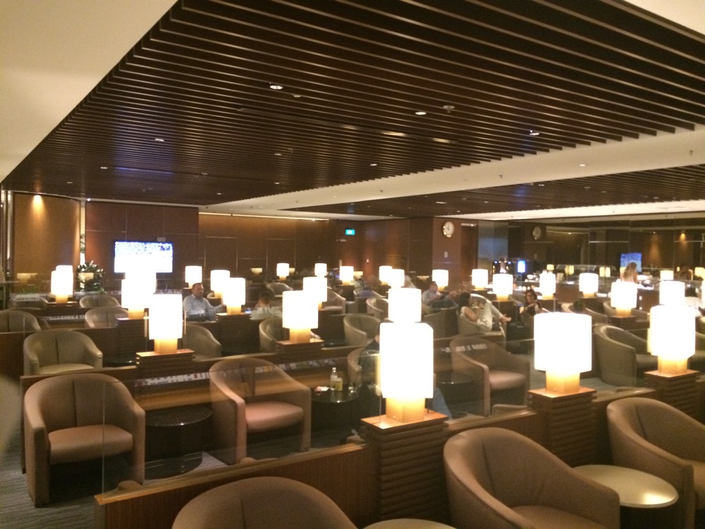 Die GoldKris Lounge besteht im wesentlichen aus einem großen, recht dunklem Raum, ohne Fenster. Hier findet man eine Vielzahl von Sesseln, welche in langen Reihen aufgestellt sind. Auch wenn die Lounge den Charme einer Bahnhofshalle hat, sollte man die vielen Steckdosen und das schnelle WIFI als positiv erwähnen.