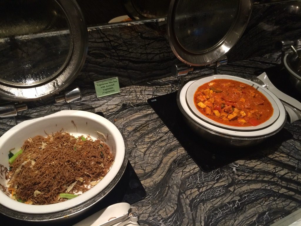 Im vorderen Bereich der Lounge befindet sich das Buffet, an welchem warme und kalte Speisen angeboten werden. Neben einigen abgepackten Sandwiches findet man hier auch mehrere warme Gerichte. Das Angebot an Speisen hat mich zwar nicht beeindruckt, allerdings kann man hier wohl durchaus satt werden.