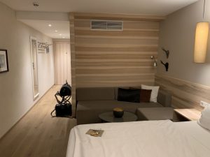 Das Zimmer war in modernem Design mit hellem Holz und grauen Möbeln und Fliesen eingerichtet. Alles funktionierte einwandfrei und ich konnte nirgends Abnutzungserscheinungen erkennen.