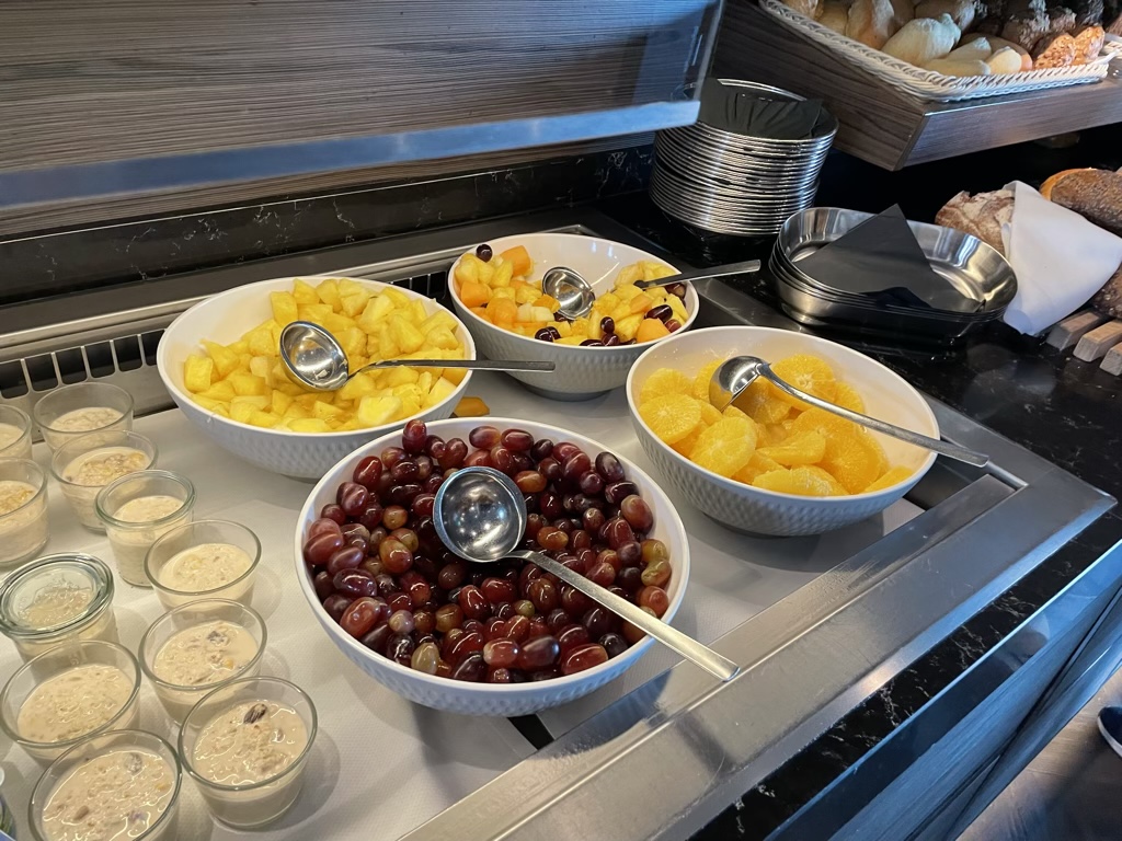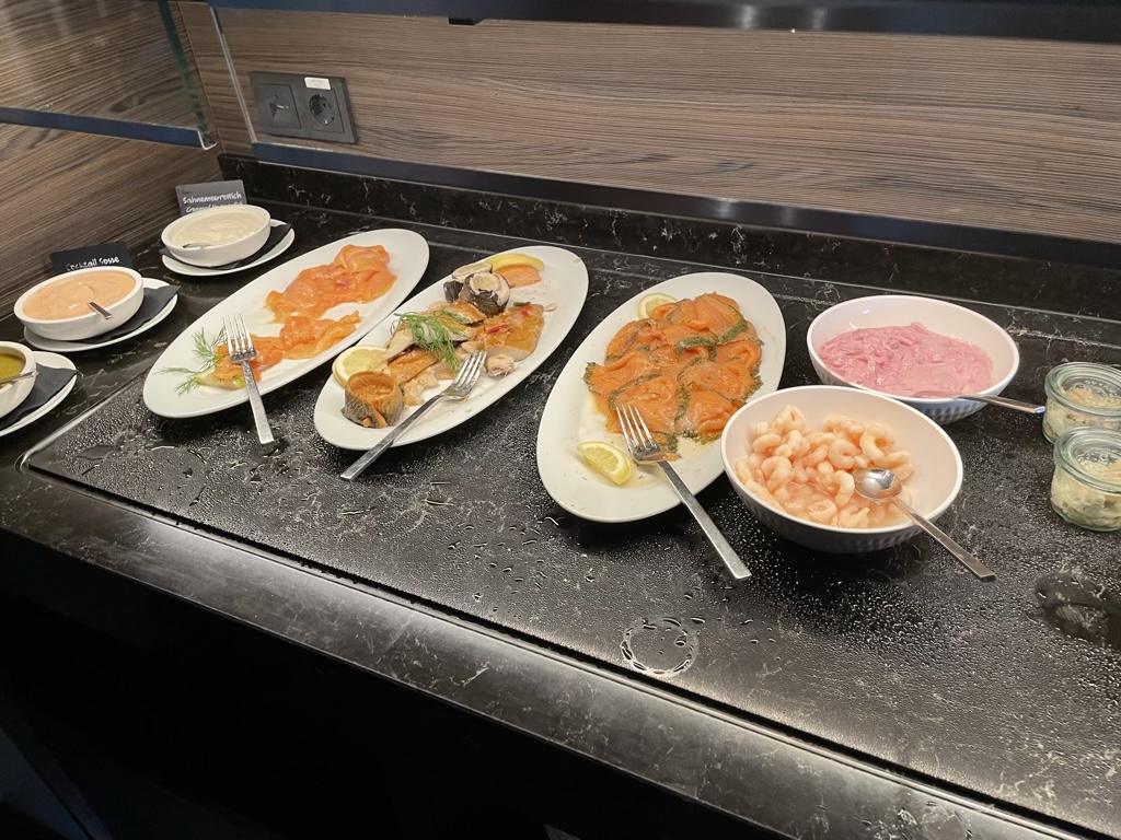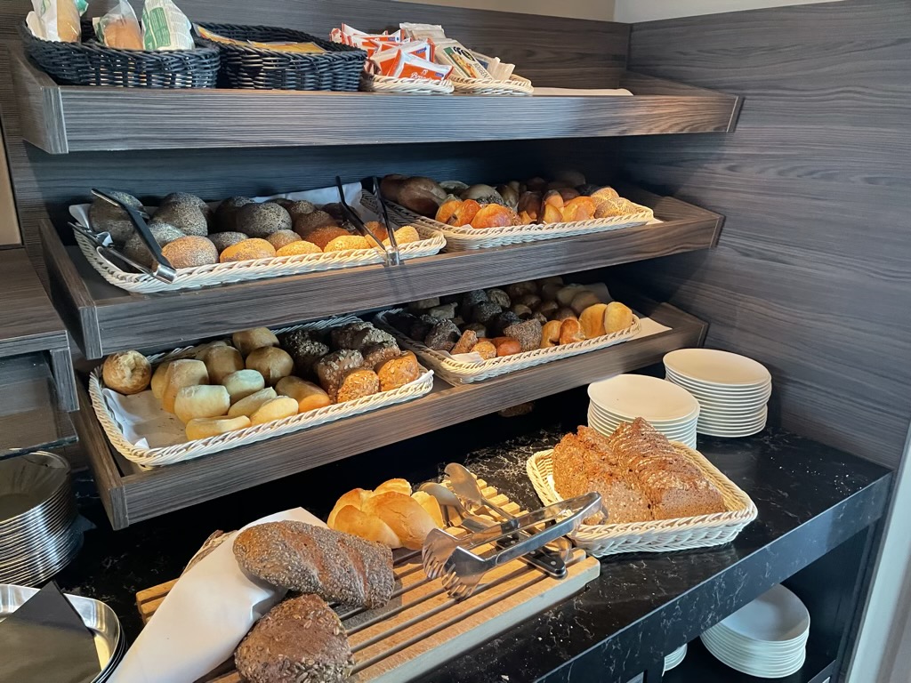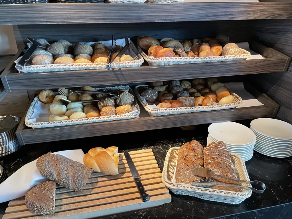 Das Frühstück wird auf einem überraschend kleinen Buffett serviert, was auch dazu führte, dass es hier und da etwas staute. Dabei sollte aber klein nicht wenig Auswahl bedeuten, vielmehr wurde alles sehr regelmäßig fisch aufgefüllt.