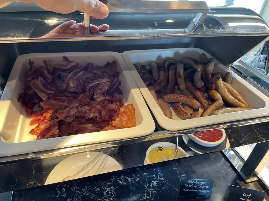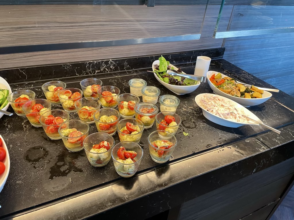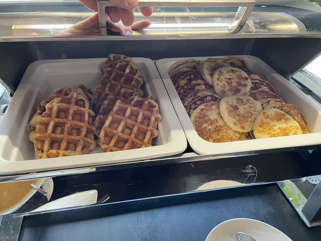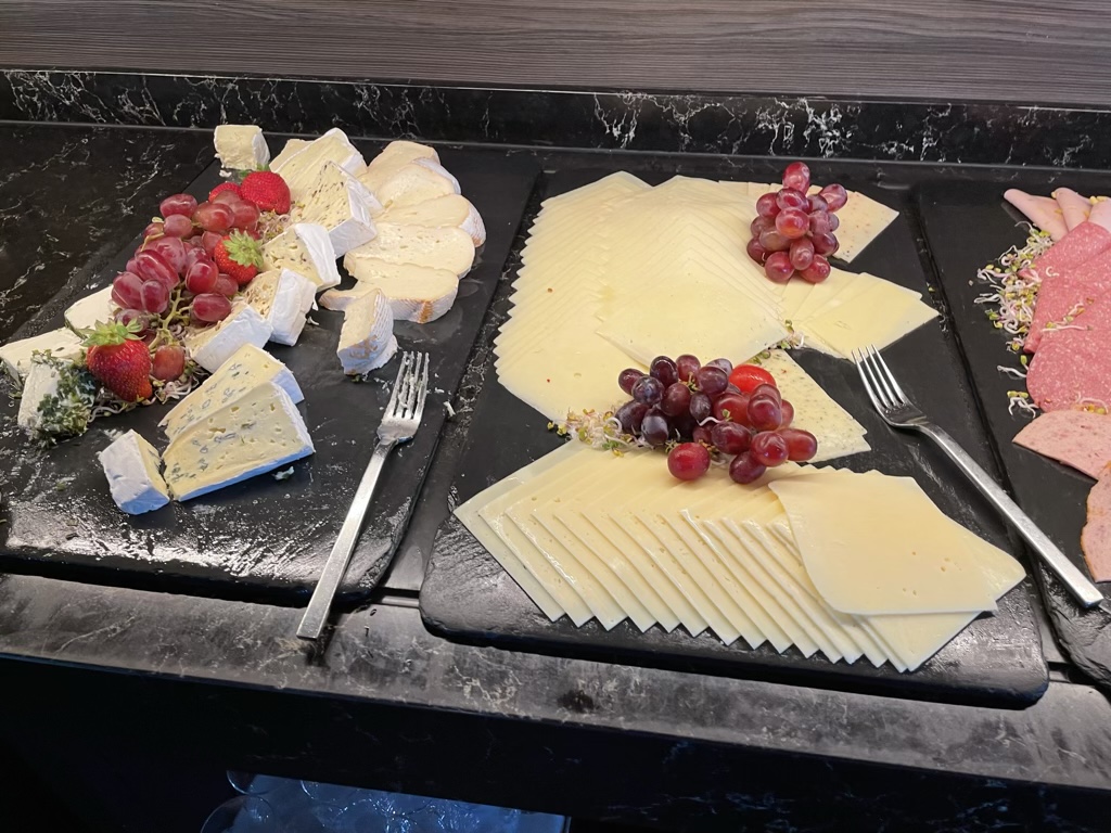 Das Frühstück wird auf einem überraschend kleinen Buffett serviert, was auch dazu führte, dass es hier und da etwas staute. Dabei sollte aber klein nicht wenig Auswahl bedeuten, vielmehr wurde alles sehr regelmäßig fisch aufgefüllt.