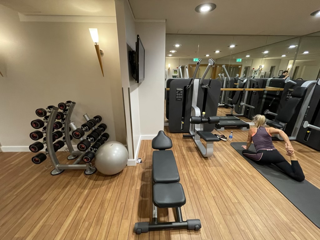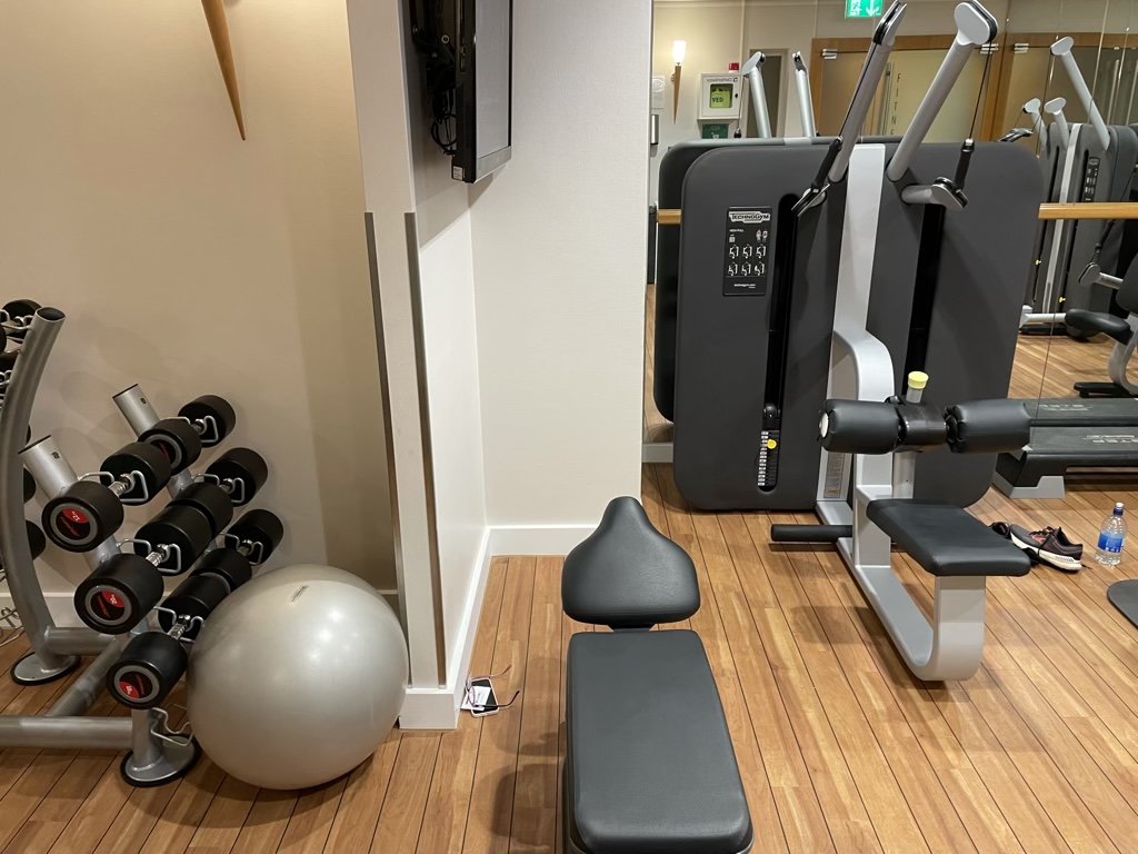 Das Le Méridien Hamburg verfügt natürlich auch über ein Fitnessstudio um Erdgeschoss des Hotels. Dabei ist es direkt gegenüber zum Eingang des Spa gelegen (welches ich leider nicht genutzt habe) und man kann die recht unscheinbare Tür 24/7 mit der Zimmerkarte öffnen.
