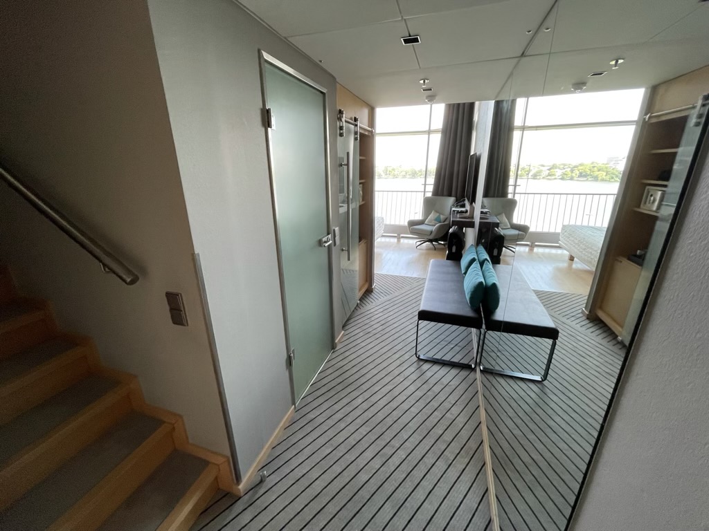 Dabei denkt man beim Betreten der Suite erst einmal nicht an genau solch eine, wenn man von der Treppe direkt neben der Tür absieht.