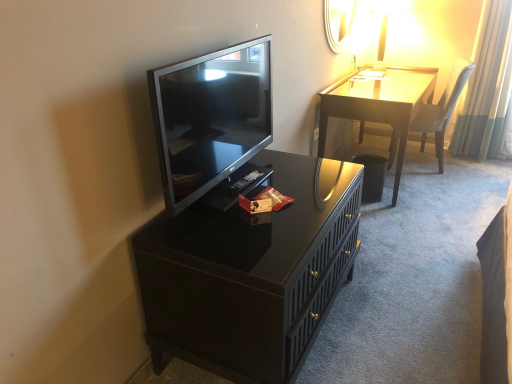Das Bett war außergewöhnlich bequem und machte insgesamt einen hochwertigen Eindruck. Neben dem Schreibtisch und dem Fernseher gibt es auch einen sehr bequemen Sessel. Leider gab es neben dem Bett keine Steckdosen, wodurch elektrische Geräte ausschließlich auf dem Schreibtisch aufgeladen werden können.