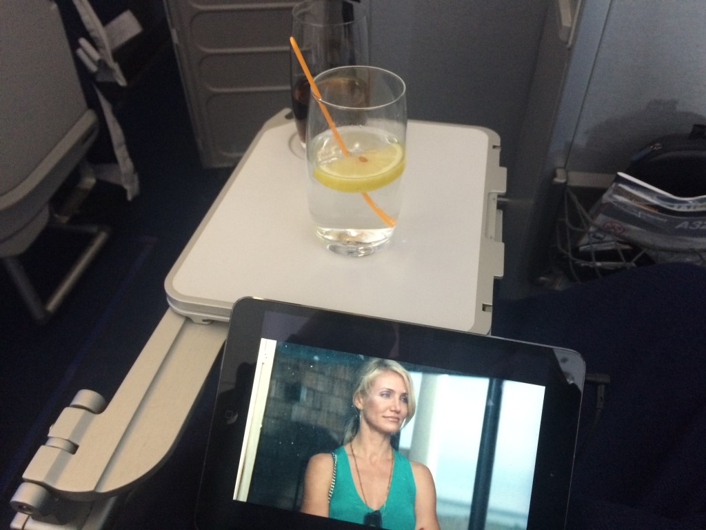 Das Essen war nach etwa eineinhalb Stunden nach dem Start beendet und wurde abgeräumt. Dabei saß ich, sowie die anderen Passagiere recht lange vor den leeren Tablets. Dies liegt insbesondere daran, das die Business Class nur von zwei Flugbegleitern bedient wird, welche einfach ihre Zeit brauchen um die vielen Passagiere zu bedienen.