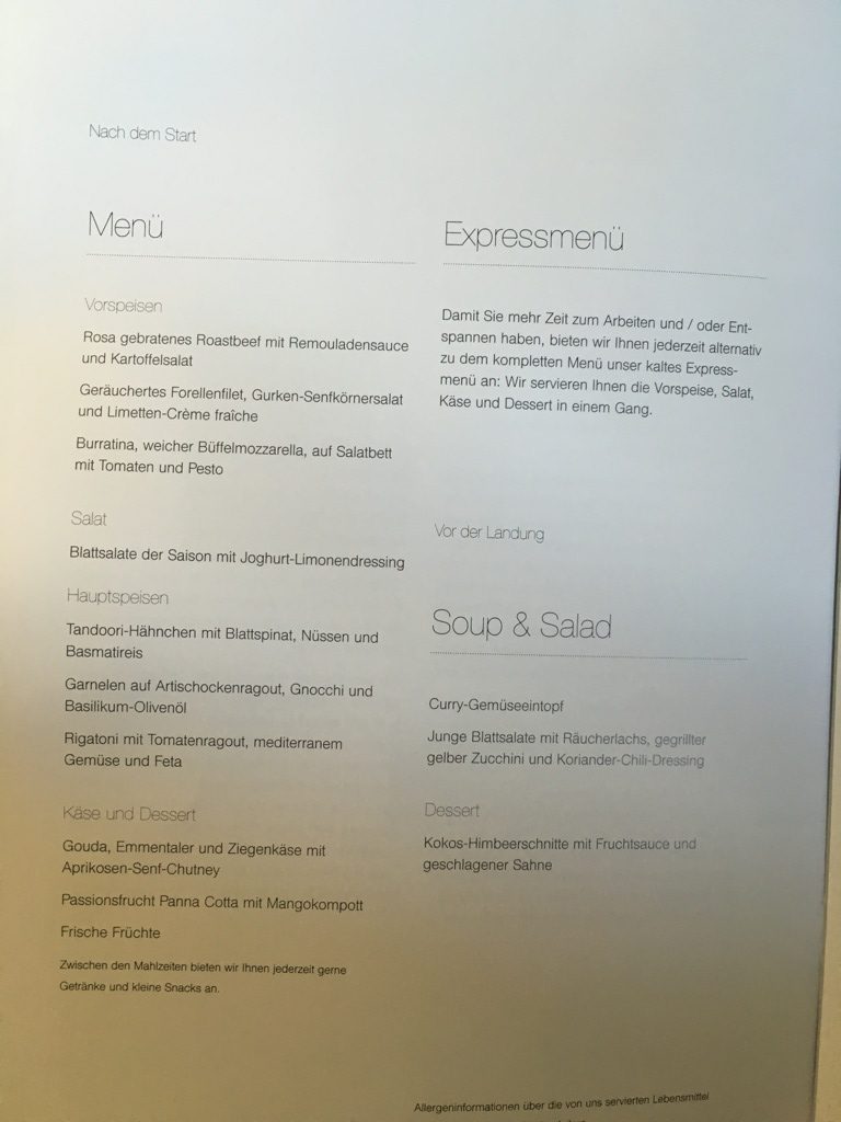 Minuten nach dem Start wurden von den Flugbegleitern heiße Tücher, sowie die Speisekarten verteilt.