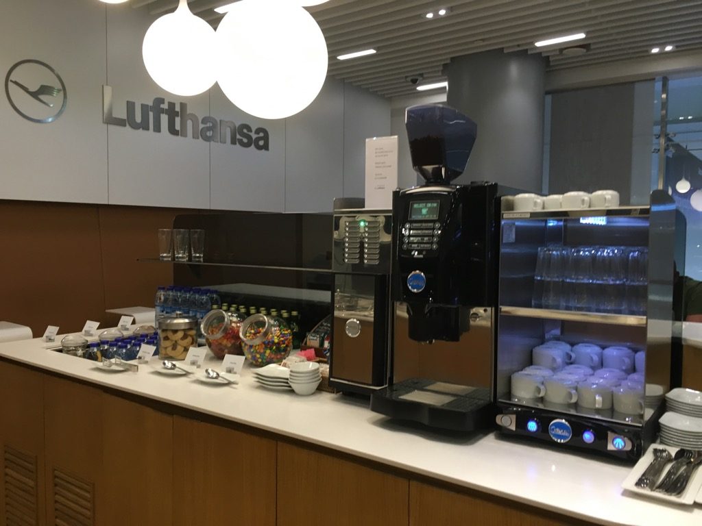 Das Angebot an Getränken beschränkt sich wieder auf das übliche Angebot einer Lufthansa Business Lounge. Neben alkoholfreien Getränken in Kühlschränken unter dem Buffet gab es auch eine hochwertige Kaffeemaschine auf dem Buffet.
