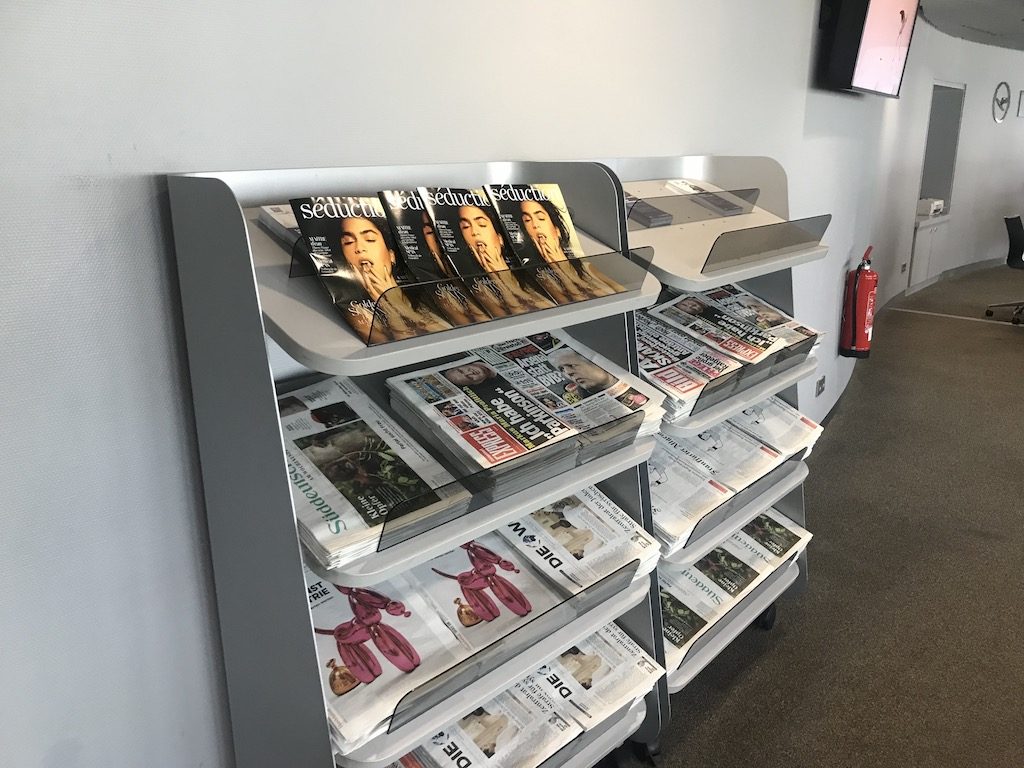 Neben einer großen Auswahl von deutschen und internationalen Zeitungen steht zudem ein Bereich mit Schließfächern und einer Handyladestation zur Verfügung.