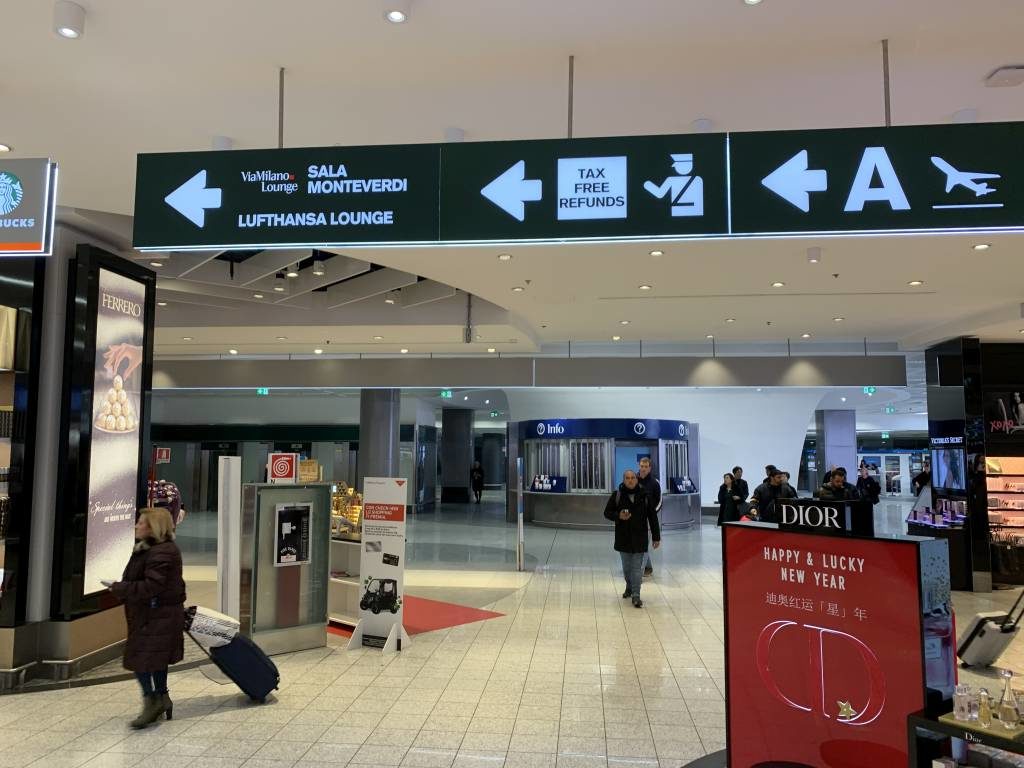 Die Lufthansa Lounge in Mailand Malpensa liegt airside hinter der Sicherheitskontrolle bei den A-Gates im Terminal 1. Der Zugang liegt recht auffällig links neben dem Gang zu den Gates 24 und aufwärts.