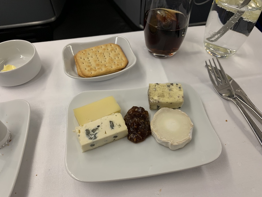 Das Dessert wird wiederum individuell serviert, wobei man immer die Auswahl zwischen einem Dessert, Früchten oder Käse hat. Auf meine Frage nach Käse und Früchten kam man etwas ins Straucheln, da bei der kleinen Business Class nicht all zu viele überzählige Essen vorgesehen sind. Möglich machen wollte man es allerdings dennoch und schaffte es auch, denn kurz nach meinem Käse wurden mir noch Früchte gebracht.