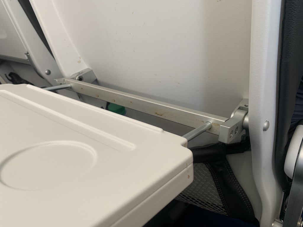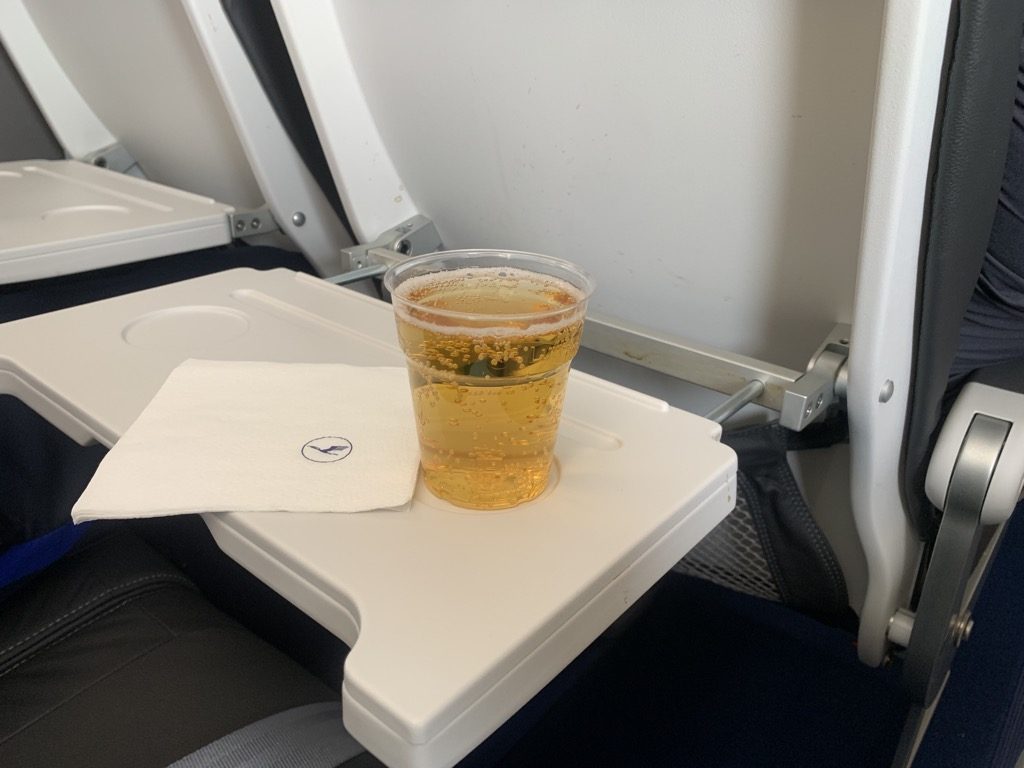 Ein wenig überrascht war ich von dem sehr kleinen Klapptisch, auf welchem man nicht mehr wirklich viel unterbringen kann. Die von Lufthansa versprochene Tablethalterung konnte ich nicht ausfindig machen, dafür ärgerte sich mein Sitznachbar über einige Kaffeeflecken am Sitz, welche das Cleaning offensichtlich übersehen hat.