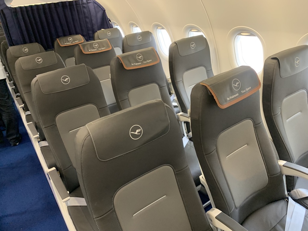 Ansonsten erinnern die Sitze sehr an die aktuelle Europakabine von Lufthansa. Wenn man von der etwas kantigeren Formgebung absieht, sind die Sitze fast identisch. So wurde die Literaturtasche auch hier nach oben verlegt um den Passagieren mehr Beinfreiheit zu bieten.