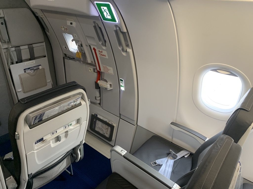 Preisfrage: Was ist in der Economy Class im Airbus A321neo besser als ein Sitz am Notausgang? Richtig! Ein Sitz in der Reihe dahinter, ohne Sitz davor. Christoph hatte für mich einen sehr angenehmen Sitz ausgewählt, bei dem ich entspannt die Beine ausstrecken konnte. Auch auf dem kurzen Flug war dies sehr angenehm. Auch das Sitzgefühl ist (sofern wir dies auf den wenigen Minuten beurteilen konnten) nahezu identisch zum alten Sitz.