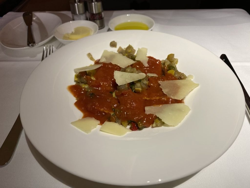 Die Vorspeisen, welche im Anschluss gereicht wurden und auch die Hauptspeise waren ebenfalls sehr lecker und schön anzusehen. Beim Dessert habe ich leider, wie so oft, aufgegeben und mich dazu entschieden zu schlafen. Es war immerhin schon ca. 1:30 in der Nacht. Da Christoph auf die Vorspeisen und den Hauptgang verzichtet hat, hat er sich fürs Dessert „geopfert“ und es als gut befunden.