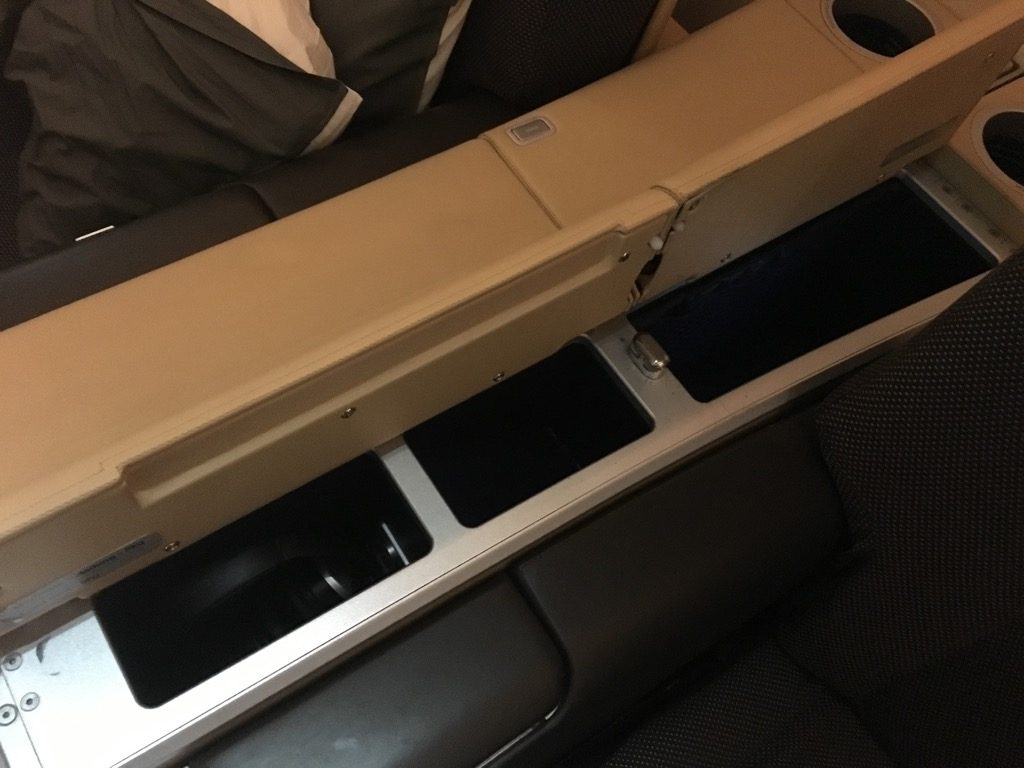 Die Sitze an sich waren gut gepolstert und hätten, wenn wir gewollt hätten, auch in ein gemütliches Bett umgebaut werden können. Die Sitze sind mit ausreichend Stauraum versehen und verfügten alle über einen eigenen großen Bildschirm mit Inflight Entertainment System. Am Fußende befand sich noch ein Ottomane, der sich, wie der restliche Sitz auch mit einem Controller verstellen ließ.