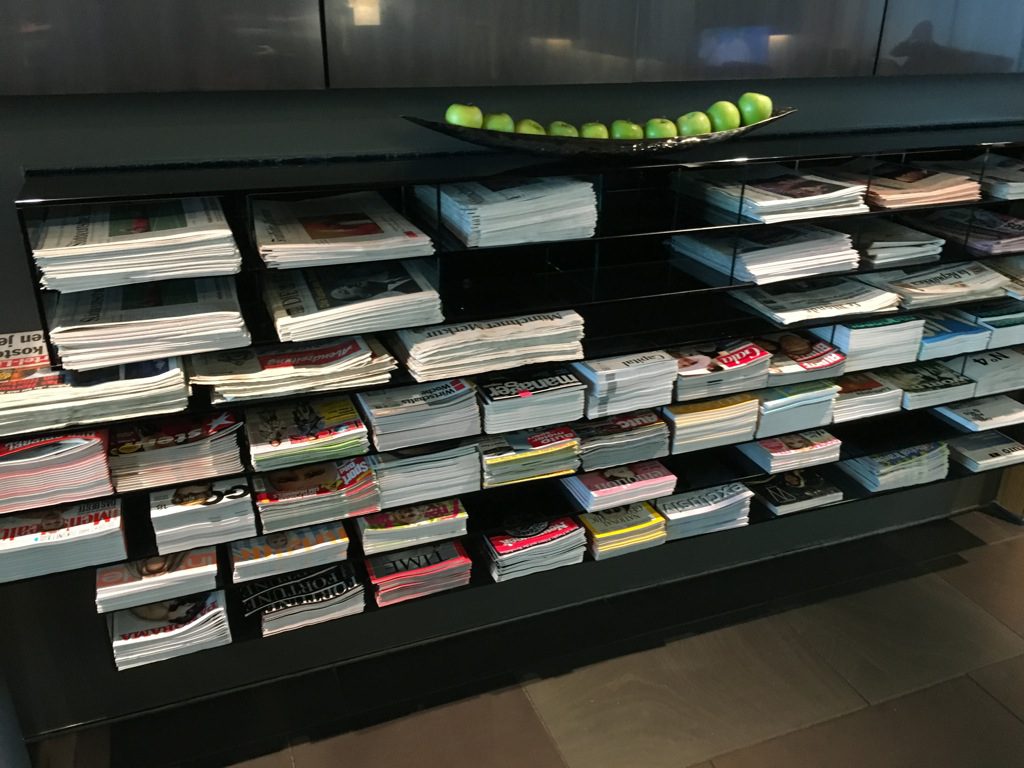 Immer wieder beeindruckend ist die Auswahl an Zeitungen und Zeitschriften in der Lufthansa First Class Lounge München. Hier findet man auch für sehr lange Flüge ausreichend Lesestoff.