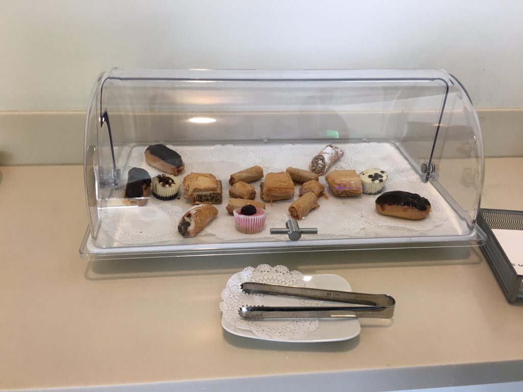 Das Buffet in der Lufthansa Senator Lounge Detroit ist zwar verhältnismäßig klein, allerdings ist man hier sichtlich bemüht eine große Auswahl an Speisen und Getränken zu bieten. So steht neben dem eigentlichen Buffet noch ein Buffetwagen mit mehreren warmen Optionen.