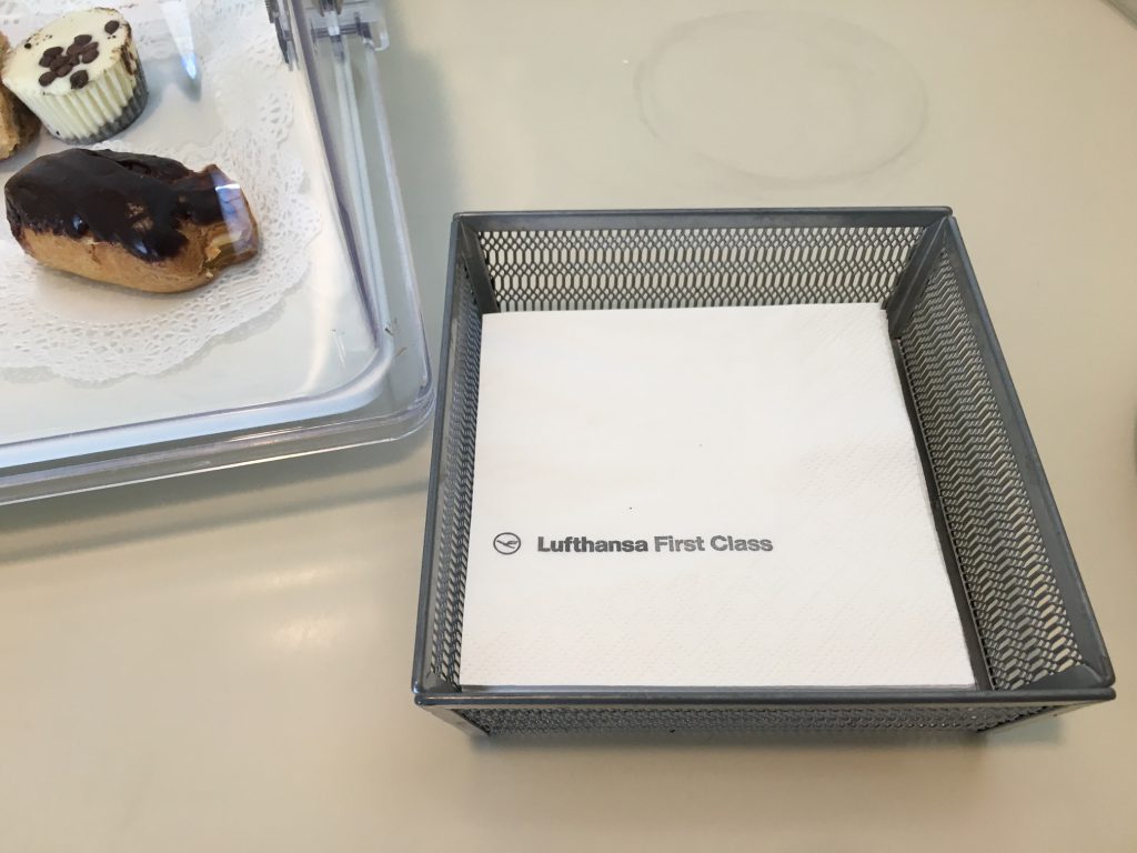 Interessant fand ich, dass man in der Lufthansa Senator Lounge Detroit das Geschirr aus der Lufthansa First Class nutzt. Seit einiger Zeit wird nach Detroit kein First Class Service mehr angeboten und Lufthansa kürzt die First Class Kapazitäten schon grundsätzlich immer weiter. Allerdings fühlt man sich als Gast doch sehr gut, wenn auf allen Servietten Lufthansa First Class steht. Schließlich ist eine Senator Lounge auch immer als First Class Lounge definiert.