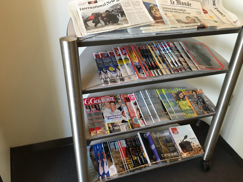 Es gibt in der Lufthansa Senator Lounge in Detroit natürlich auch eine breite Auswahl an Zeitungen und Magazinen. Besonders als deutschsprachiger Gast finde ich es in einer Lufthansa Lounge im Ausland immer wieder schön auch deutsche Magazine zu erhalten.
